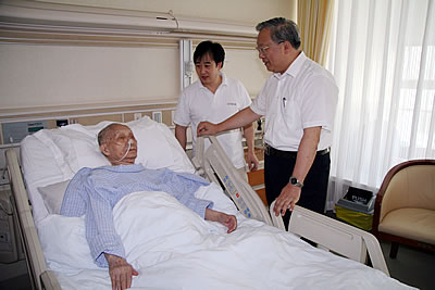 路甬祥親切看望李昌 在李昌的病房中,李老的秘書向路甬祥介紹了李老的病情,并代表李老將其著作送給路甬祥,路甬祥叮囑醫(yī)務(wù)人員要精心照顧老領(lǐng)導(dǎo)。