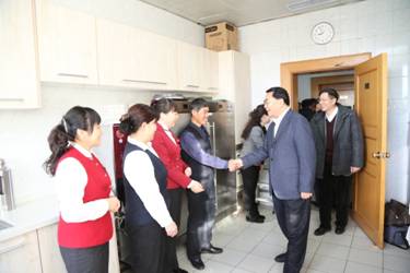 白春禮與食堂職工親切交談
