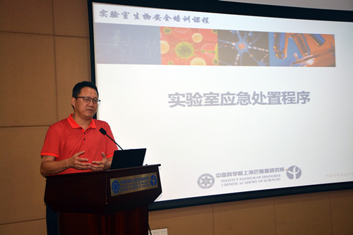 生物安全實(shí)驗(yàn)室主任、生物安全委員會(huì)委員金俠研究員為參會(huì)人員做安全培訓(xùn)