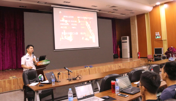 首先,消防知識宣教員圍繞基本消防安全制度相關(guān)法律法規(guī)進行講解,使大家對消防安全形成基理念。接著,宣教員圍繞科研場所防火的重要性,日常生活中常見的手機電池、液化氣、電路老化等現(xiàn)象的起火原因,各種火災處置方案進行了講解。隨后,宣教員結(jié)合實際案例,配合一幅幅觸目驚心的圖片、一段段發(fā)人深省的視頻,生動地講解了消防安全知識,并提醒大家報警時應該注意提供著火地點、火勢大小、著火場所等信息。最后,宣教員向大家講解了滅火器的滅火原理,組成成分以及使用方法,向大家做了使用滅火器處置火情示范。