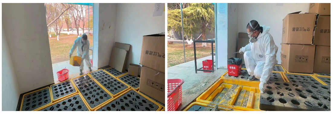 組織開展氣體泄漏、廢液遺灑預(yù)案演練活動。實(shí)驗(yàn)人員學(xué)習(xí)氣瓶操作規(guī)程與應(yīng)急處置方法,并與化學(xué)所微型消防站隊(duì)員開展氣體泄漏演練;危險(xiǎn)廢物現(xiàn)場作業(yè)人員開展廢液遺灑演練,演示應(yīng)急物資規(guī)范圍堵與覆蓋。